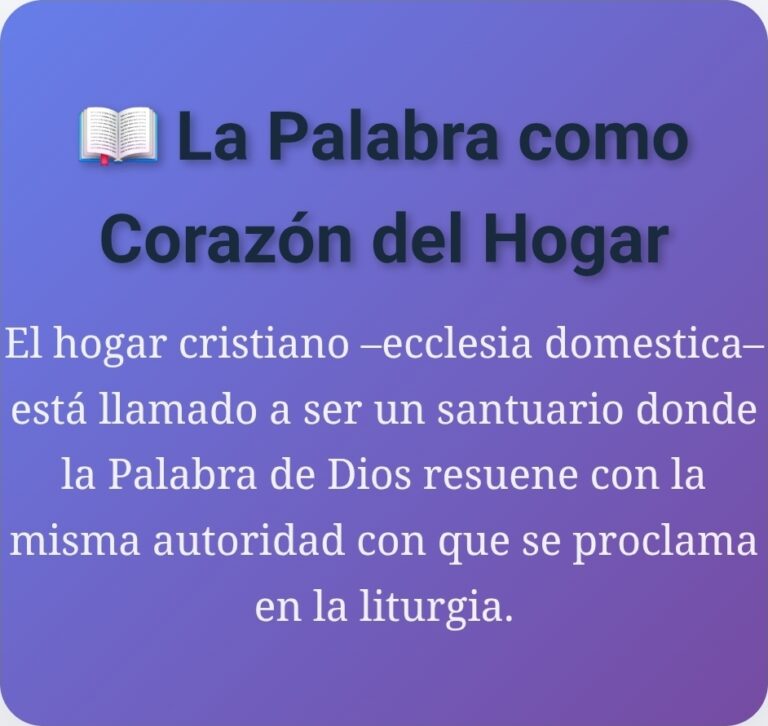 La Palabra como Corazón del Hogar 📖 La Palabra como Corazón del Hogar El hogar cristiano –ecclesia domestica– está llamado a ser un santuario donde la Palabra de Dios resuene con la misma autoridad con que se proclama en la…